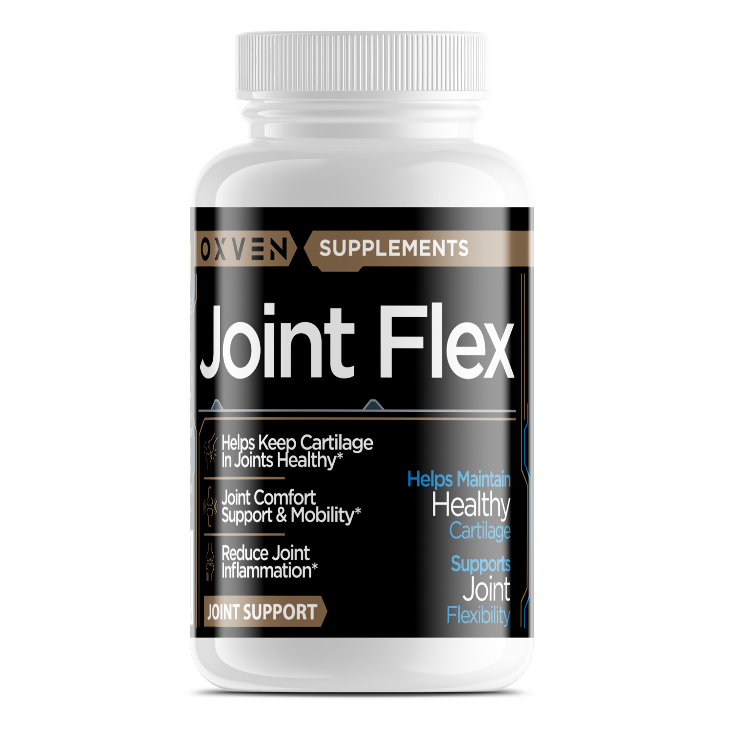 Joint Flex is a world-class formula that supports healthy joints, reduces inflammation, alleviates joint pain, increases joint flexibility, reduces muscle damage from exercise, and enhances overall exercise performance.